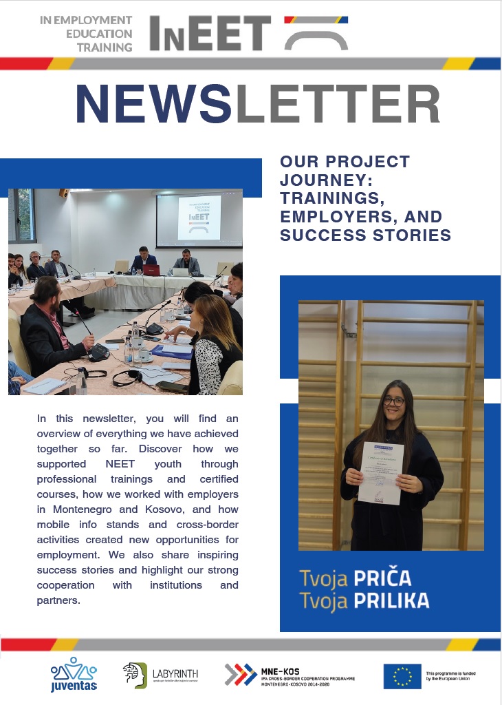 U ovom informatoru pronaći ćete pregled svega što smo zajedno postigli do sada. Saznajte kako smo podržali mlade iz NEET populacije kroz stručna osposobljavanja i sertifikovane kurseve, kako smo sarađivali s poslodavcima u Crnoj Gori i na Kosovu, te kako su mobilni info štandovi i prekogranične aktivnosti otvorili nove prilike za zapošljavanje. Donosimo vam i inspirativne uspješne priče, kao i prikaz naše saradnje s institucijama i partnerima.